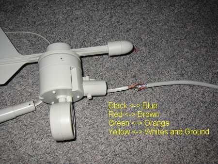 You are done. All that is left is testing it. If it does not work I bet you have mirrored the wires. If you have done it wrong inside the wind sensor you must open it again and correct it. The ground must be connected to the shield and the ground pairs for the shielding to work. If you mirrored at the modular connector then you can just cut the connector off and put another the right way.