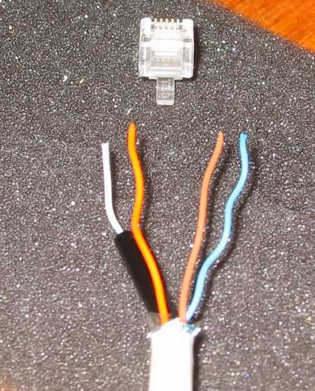 the 4 wires as shown. The 6P4C is shown from where the cable goes in and the
